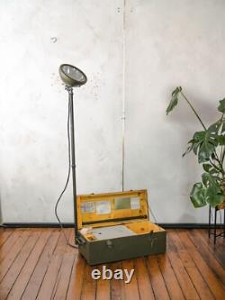 NIFE Marking: The lamp bears the "NIFE" stamp, indicating its manufacture by the renowned Swedish battery company known for producing military-grade equipment. New Old Stock Condition: Though decades old, this item has never been used. Please note, due to its age, it may exhibit minor signs of storage, such as dust or slight oxidation. Assembly Required: The lamp is non-functional out of the box. To operate, it requires connection to a suitable battery or rewiring. This offers a unique project for enthusiasts interested in vintage electronics or restoration. Crate: 66cm x 28cm x 24cm / 26" x 11" x 9.4. You can assemble 1, 2 or 3 legs for the required height of the assembled lamp. Interior decorators seeking unique industrial pieces? Functionality is not guaranteed without proper restoration or attaching a required battery.